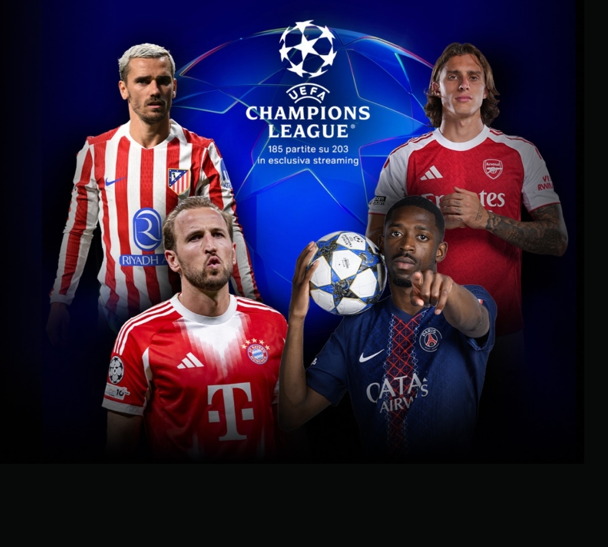 *Con il Pass Sport puoi guardare in diretta: la UEFA Champions League con 185 partite su 203 a stagione in esclusiva streaming; la Serie A Enilive 25/26 con 3 partite su 10 ogni turno per il ciclo 2024/2029 e almeno 30 delle migliori 76 partite; tutti i tornei commercializzati da ATP e WTA tour