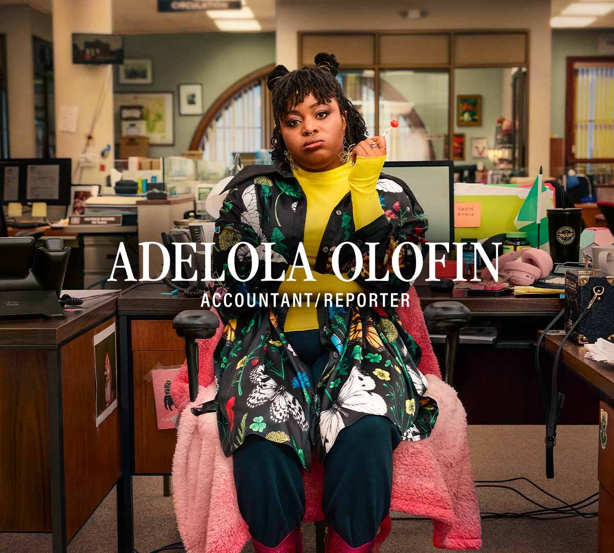 - Gbemisola Ikumelo interpeta Adelola, ex contabile diventata reporter, non sopporta gli stupidi, anche se spesso si ritrova circondata da loro.